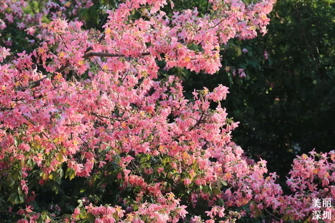 每年10月至12月是异木棉的花期,粉色的花朵如云似霞,为深圳的八街九陌增添了一抹存眷。整树密生圆锥状皮刺,花开时却呈现出令东说念主惊艳的柔好意思。